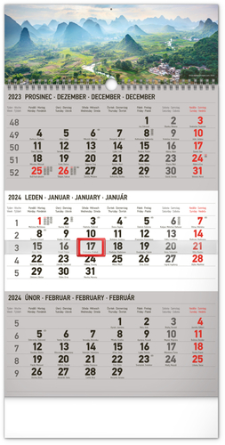 Kalendář 2024 nástěnný: 3měsíční Krajina šedý - s českými jmény, 29,5 × 43 cm