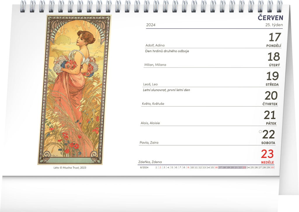 Stolní kalendář Alfons Mucha 2024, 23,1 × 14,5 cm