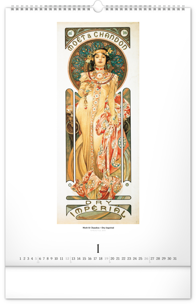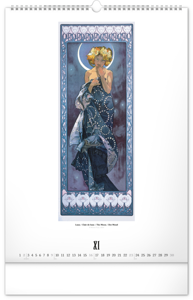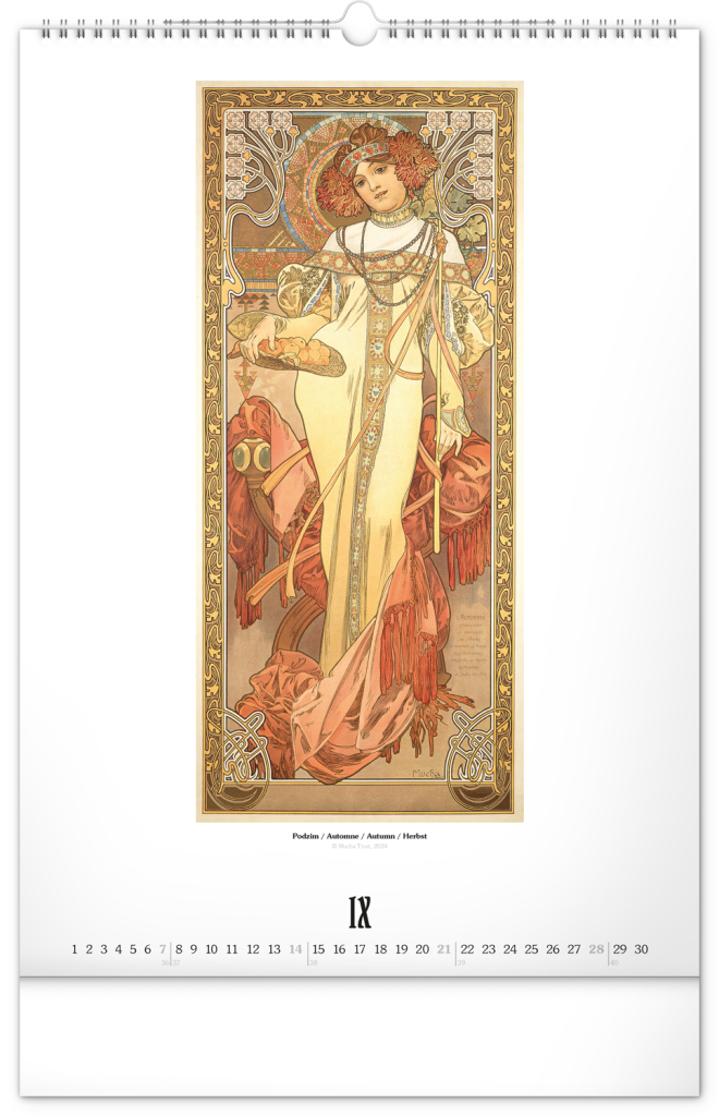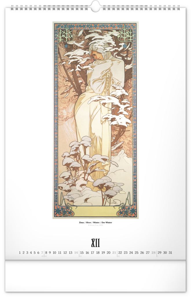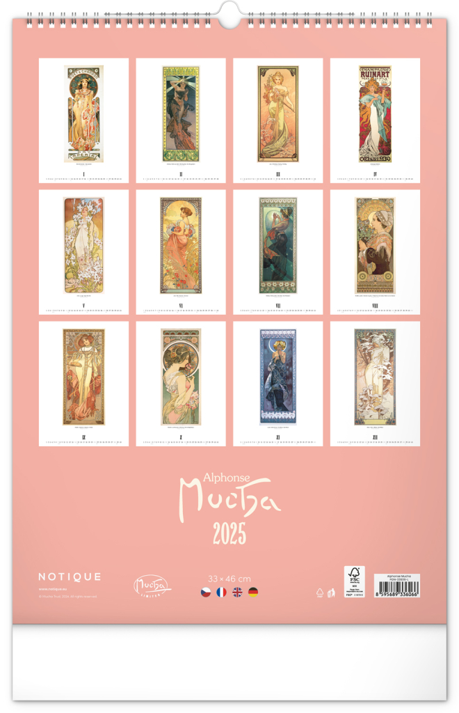 NOTIQUE Nástěnný kalendář Alfons Mucha 2025, 33 x 46 cm
