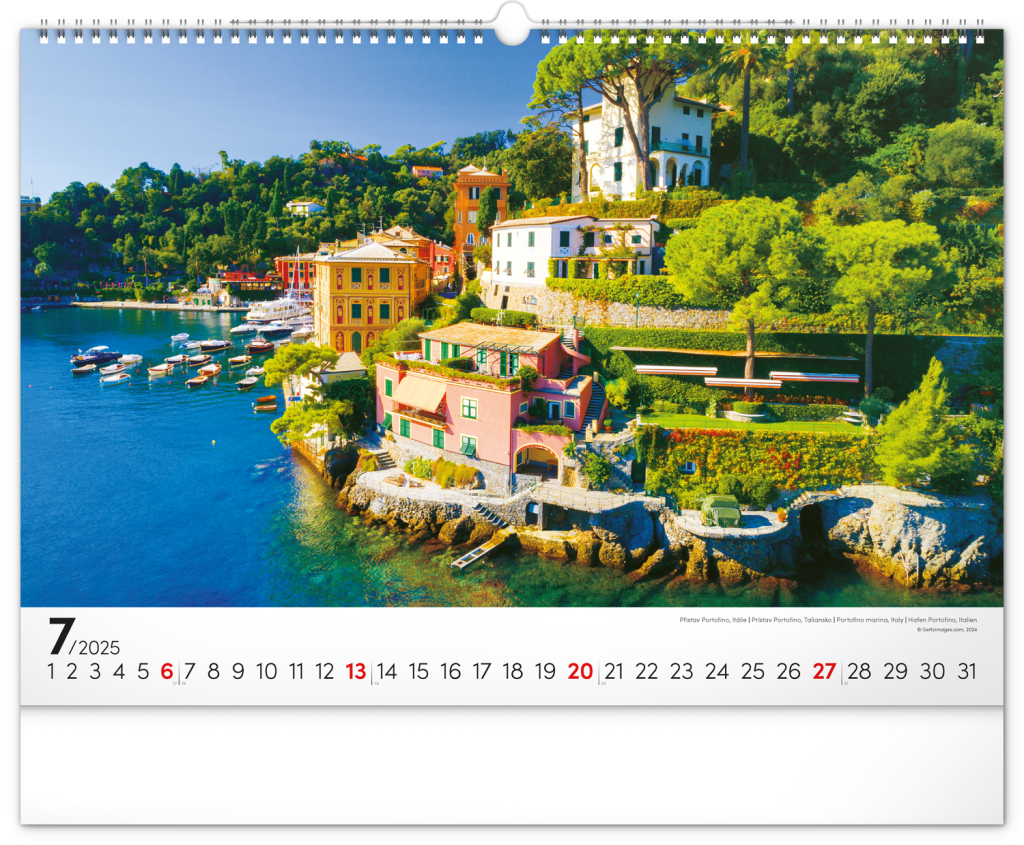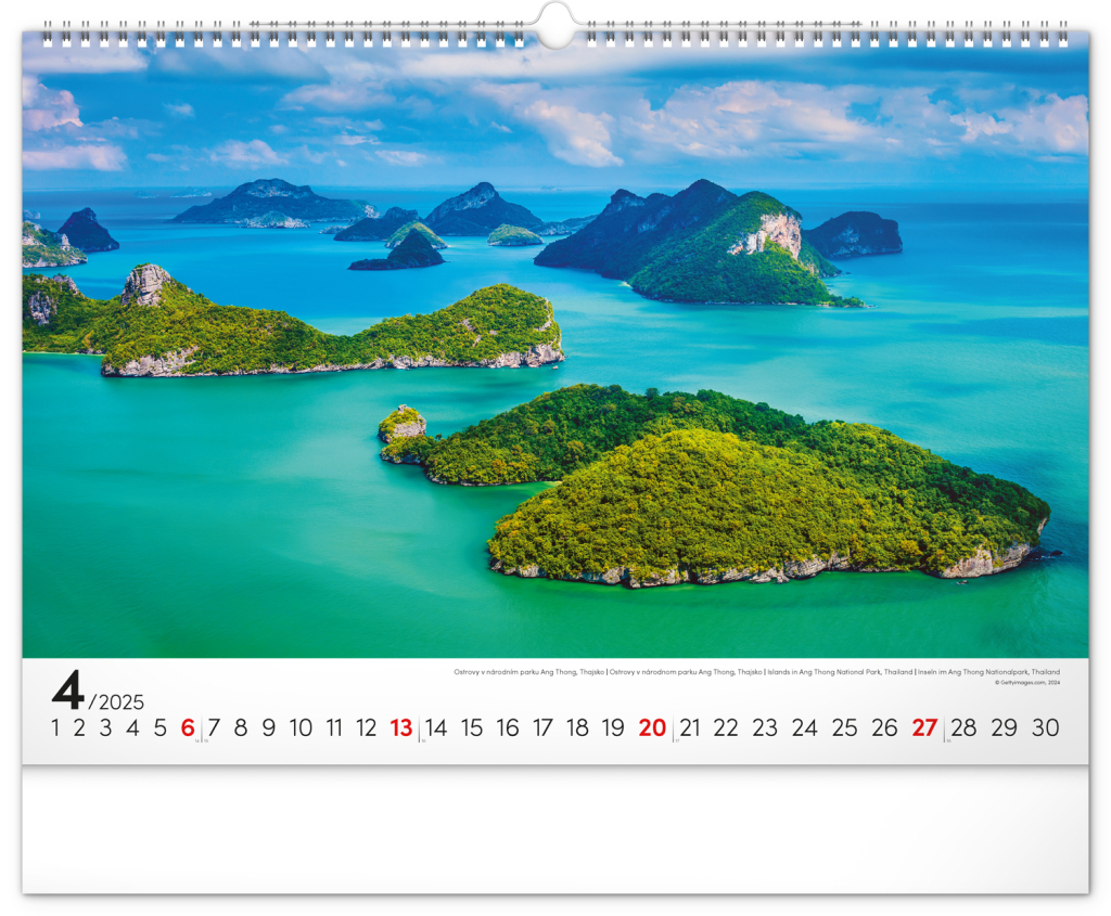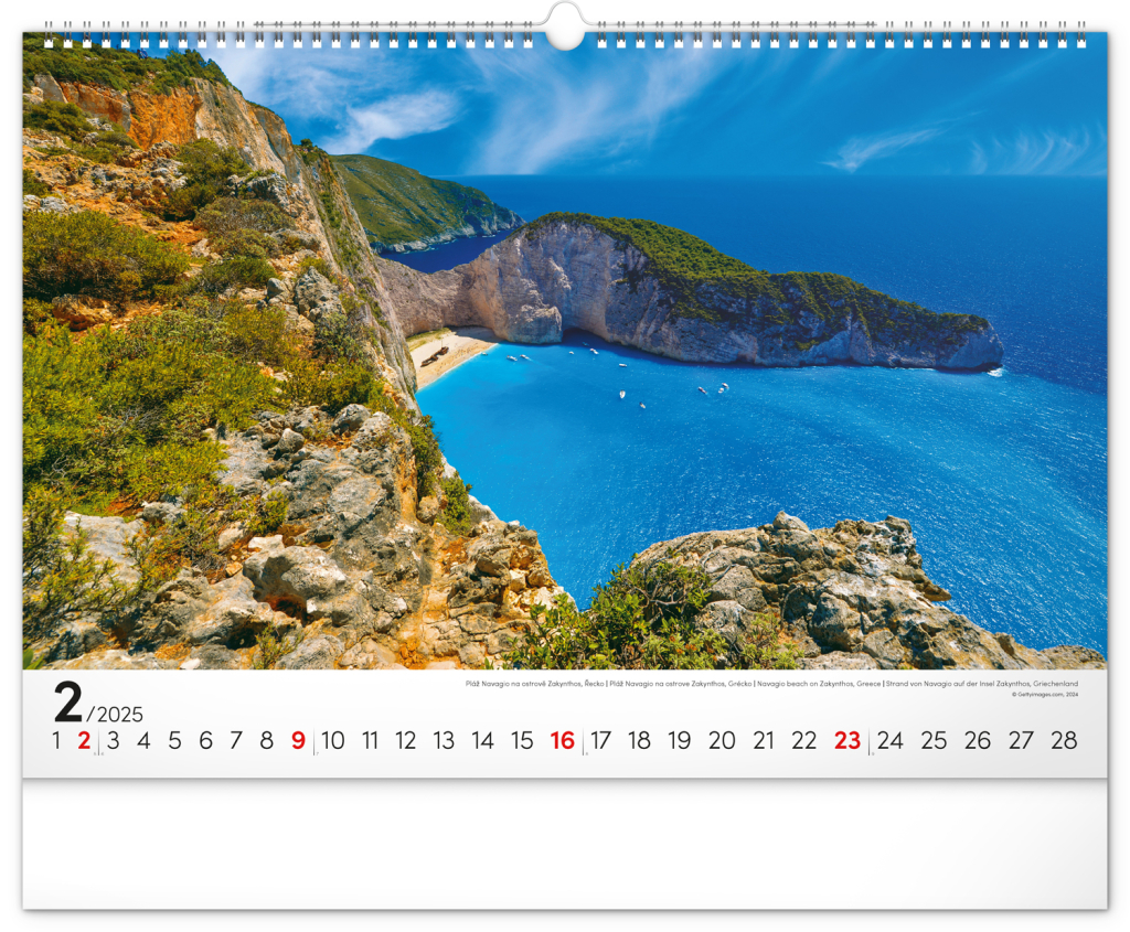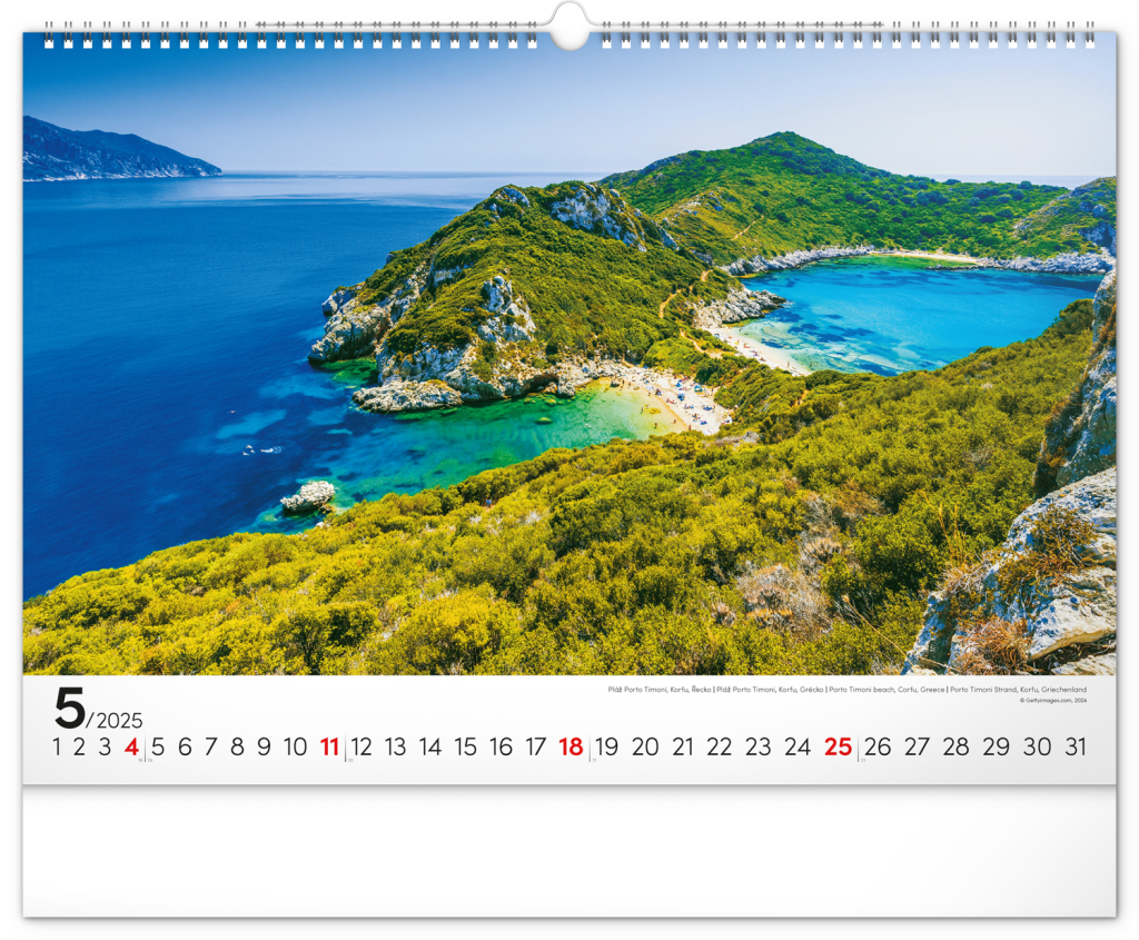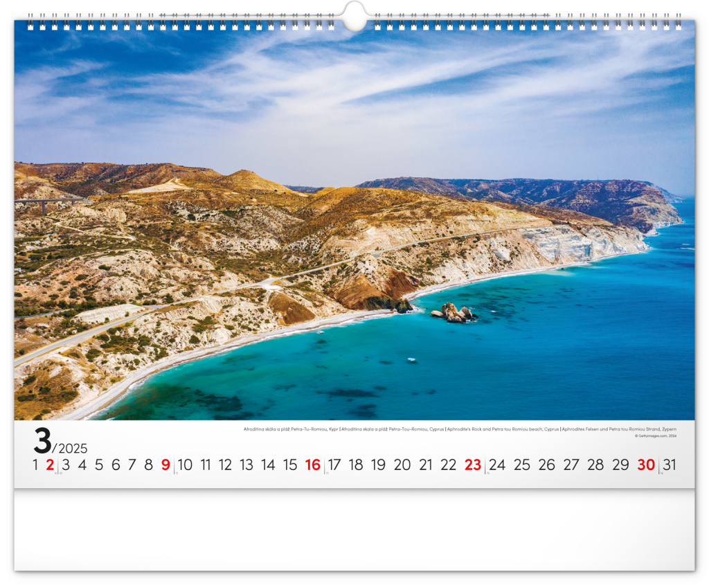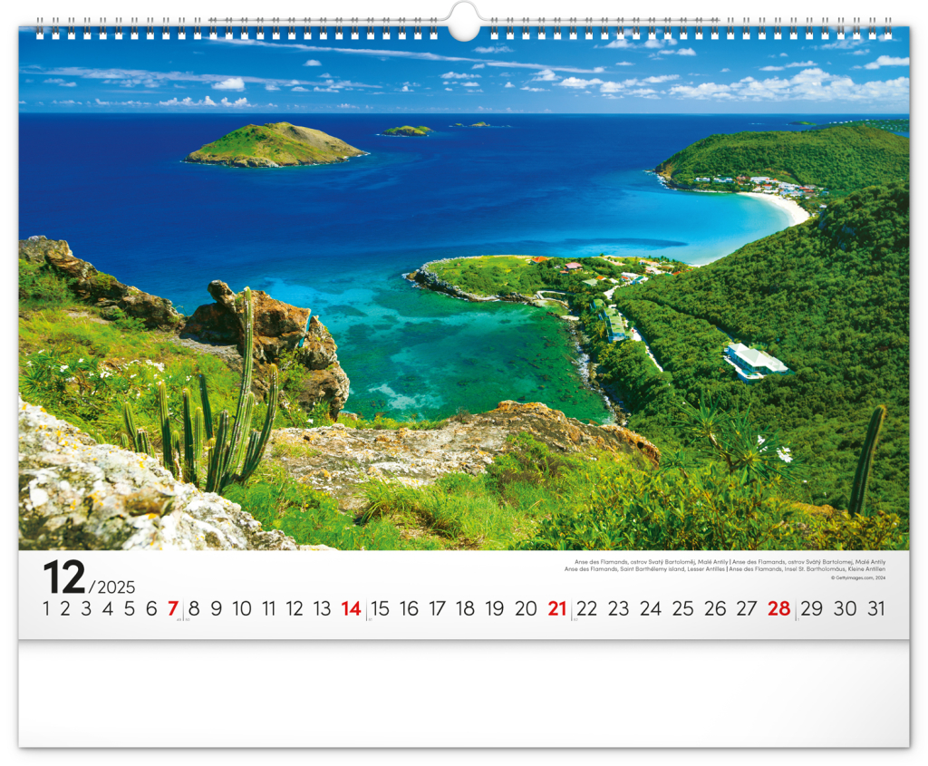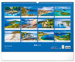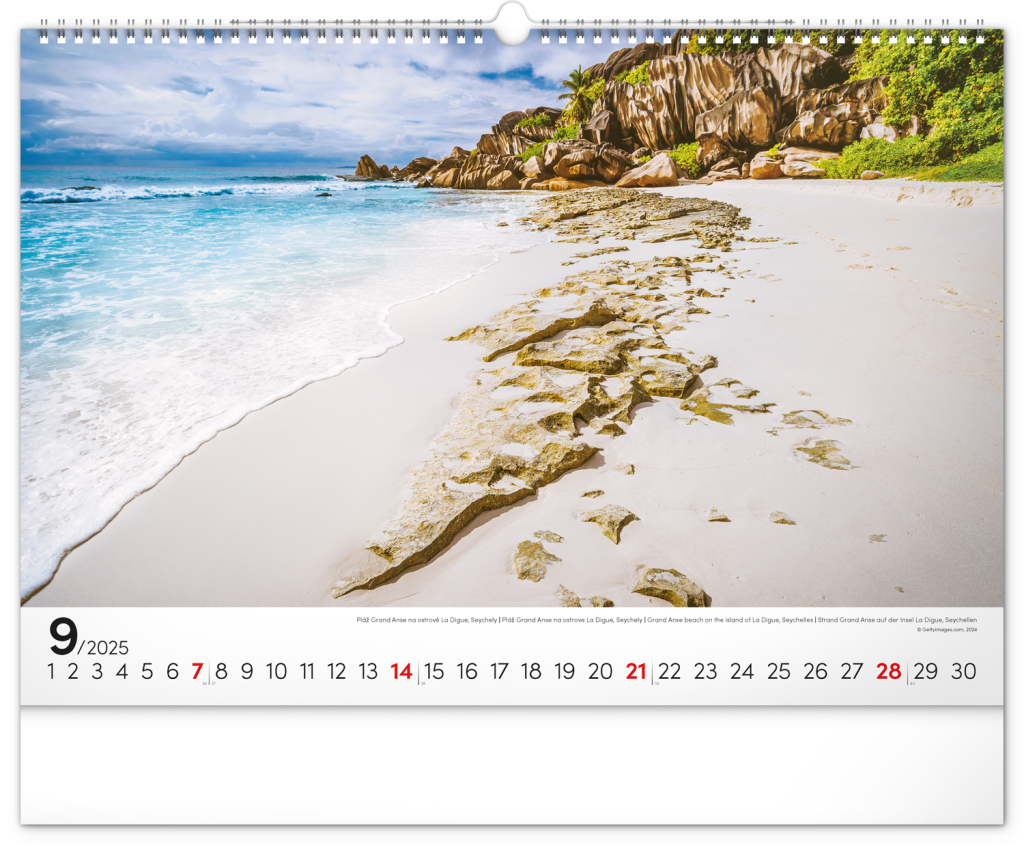 Průzračná tyrkysová hladina, azurové nebe s bílými mráčky, palmy, paprsky slunce, to je skutečný ráj na zemi. Dvanáct plážových momentek z Portugalska, Thajska i jiných světových destinací na efektním bílém pozadí s jednoduchým kalendáriem.