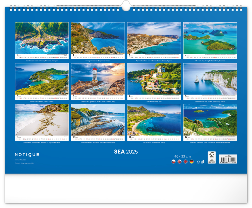 NOTIQUE Nástěnný kalendář Moře 2025, 48 x 33 cm