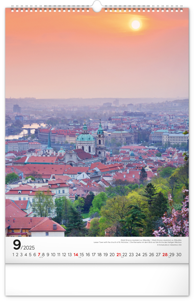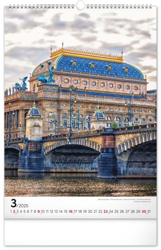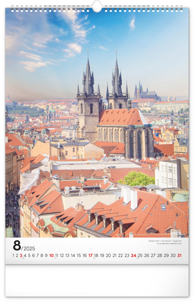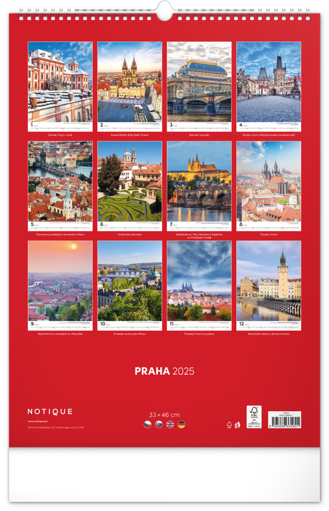 NOTIQUE Nástěnný kalendář Praha 2025, 33 x 46 cm