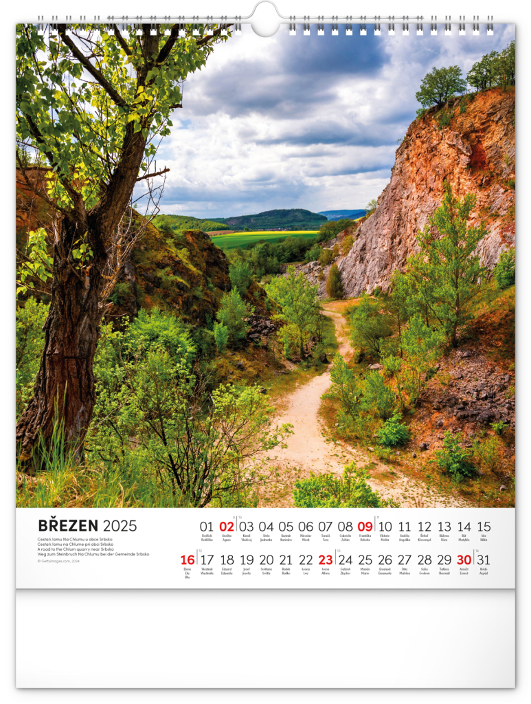 Zatoulejte se s námi na krásná místa České republiky. Dvanáct přírodních zákoutí z celé České republiky, jednoduché kalendárium s českými jmény a praktický formát vhodný do každého interiéru.