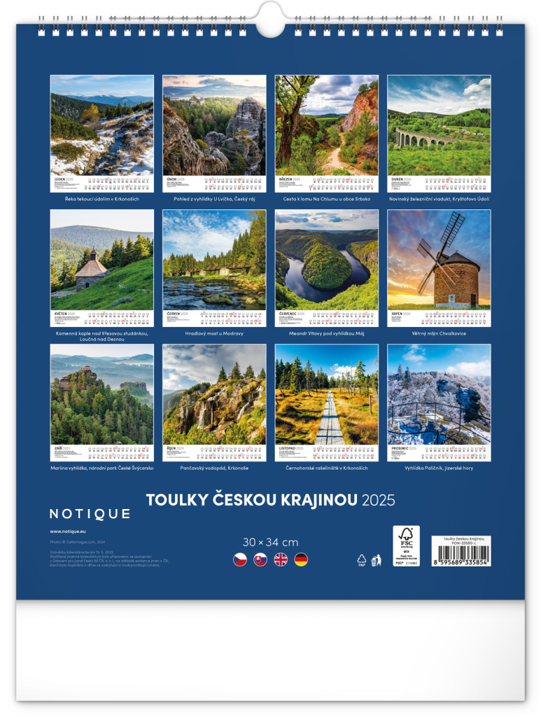 NOTIQUE Nástěnný kalendář Toulky českou krajinou 2025, 30 x 34 cm