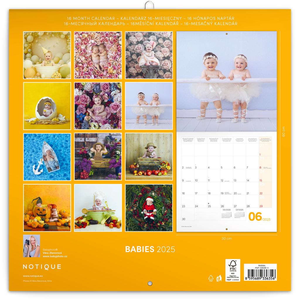 NOTIQUE Poznámkový kalendář Babies – Věra Zlevorová 2025, 30 x 30 cm