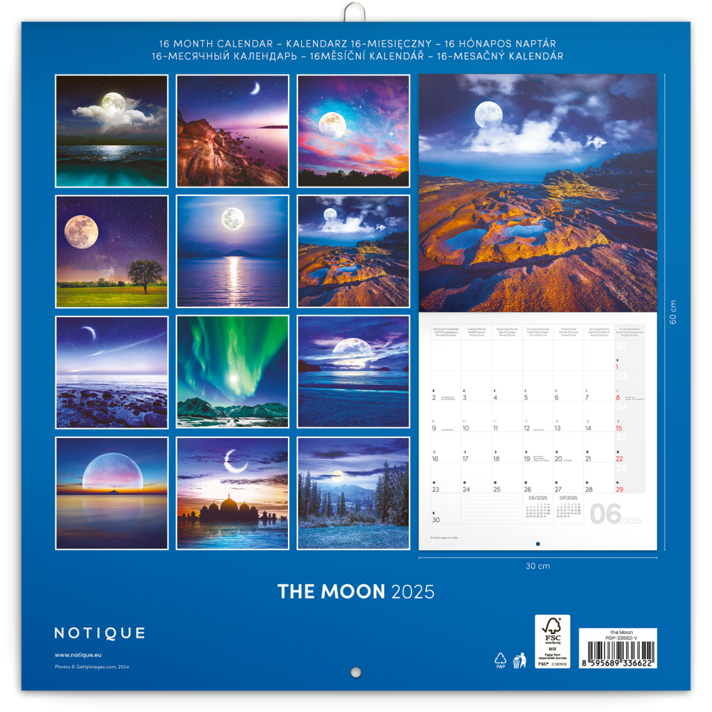 NOTIQUE Poznámkový kalendář Měsíc 2025, 30 x 30 cm