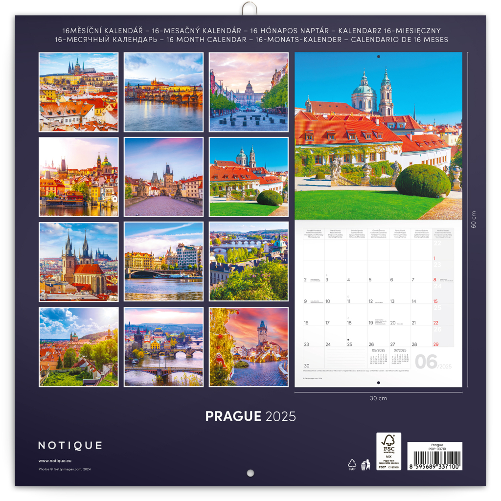 NOTIQUE Poznámkový kalendář Praha 2025, 30 x 30 cm