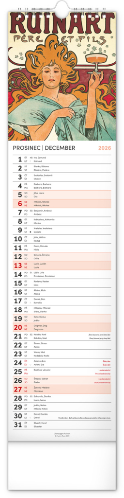 Kalendář 2026 nástěnný: Alfons Mucha, 12 x 48 cm