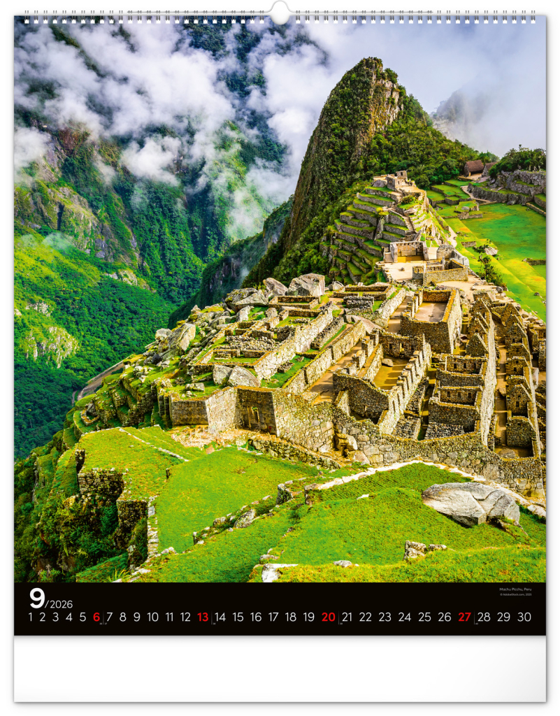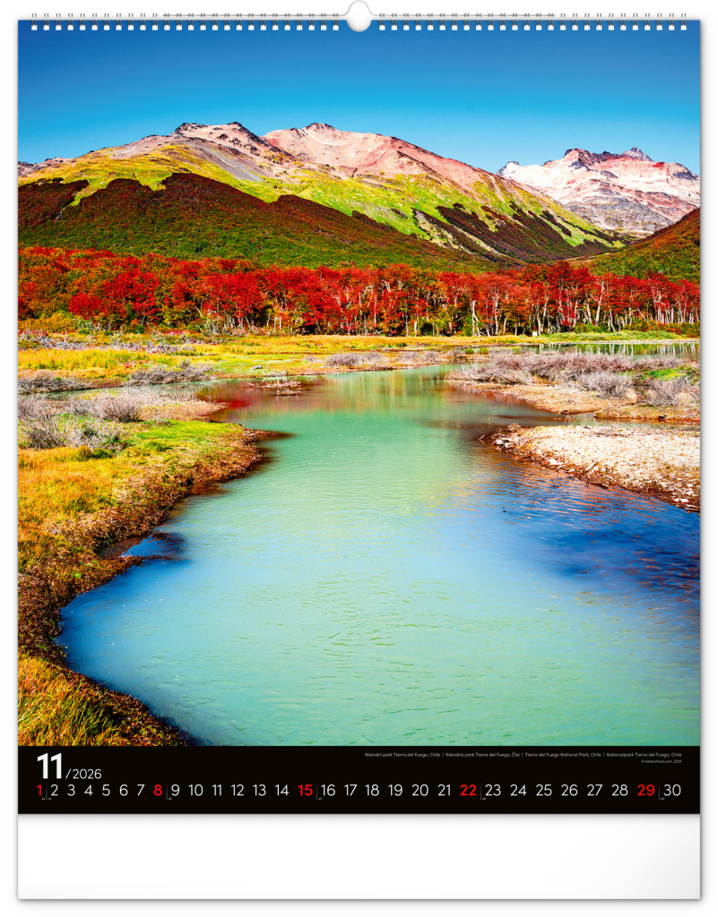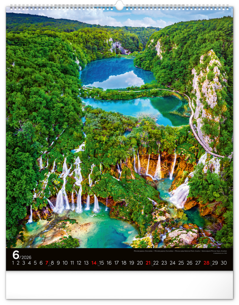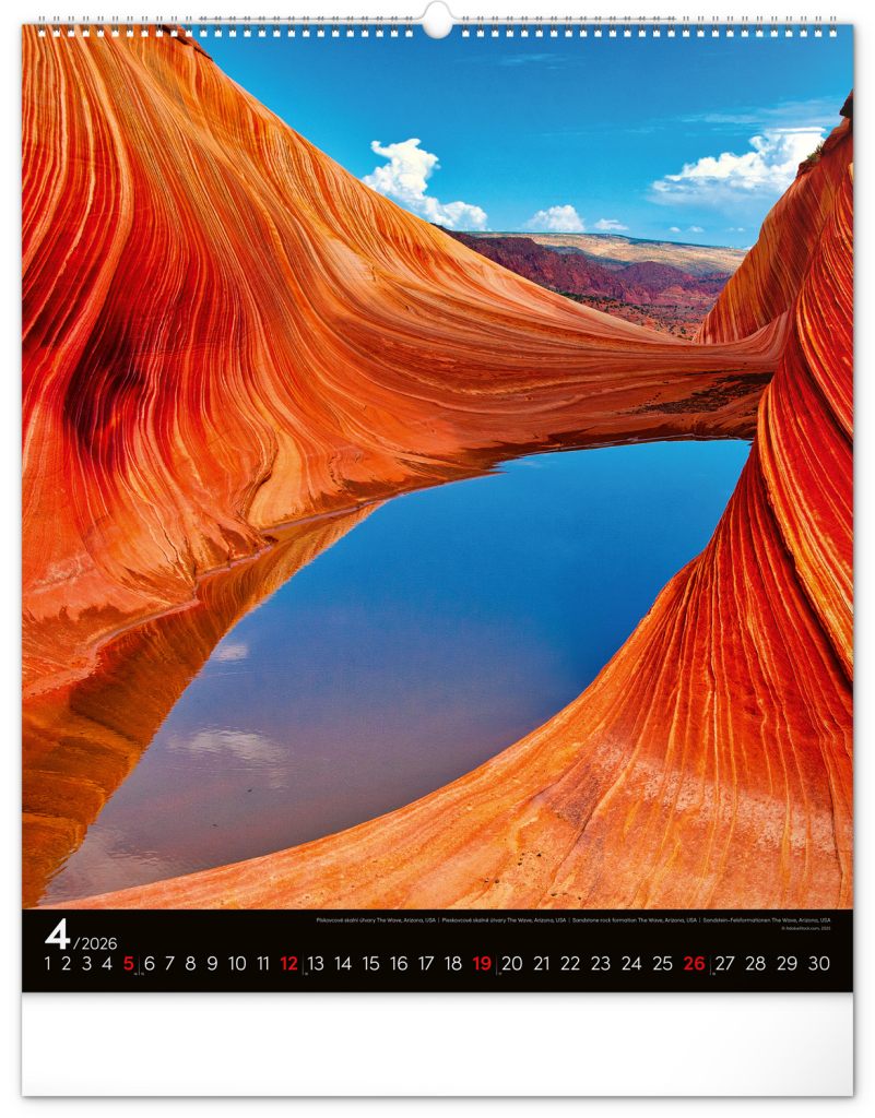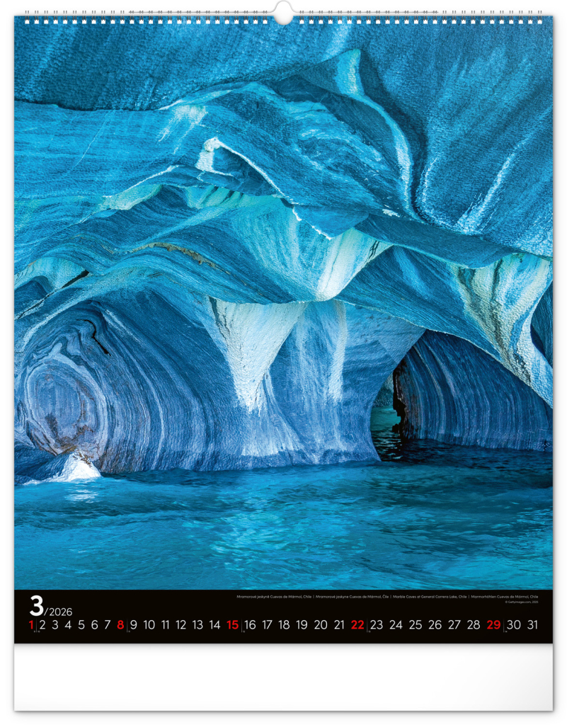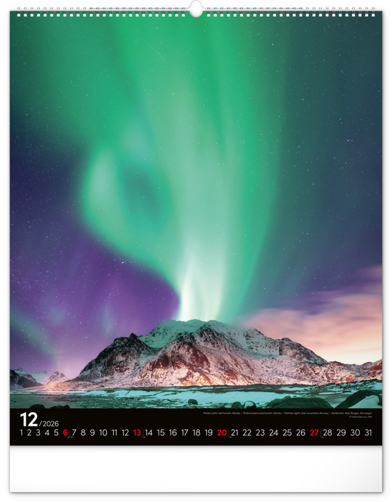 Kalendář z kolekce Platinum Collection obsahuje velkoformátové fotografie přírodních scenérií z exotických zemí. Pověste si na zeď okno do světa! Fotografie islandské přírody nebo arménského kláštera doplňuje univerzální kalendárium na černém pozadí.
