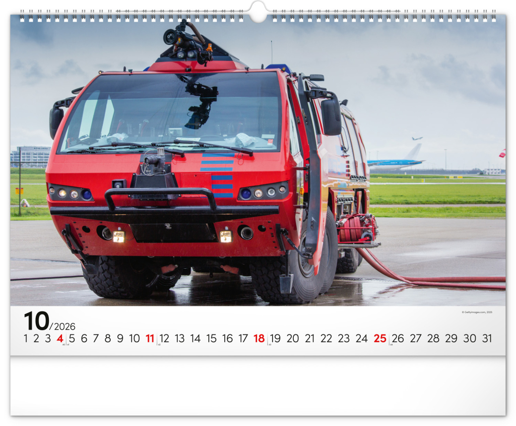 Kalendář 2026 nástěnný: Hasičské vozy, 48 x 33 cm