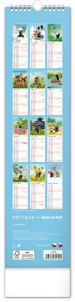 Kalendář 2026 nástěnný: Krteček - Krtko, 12 x 48 cm