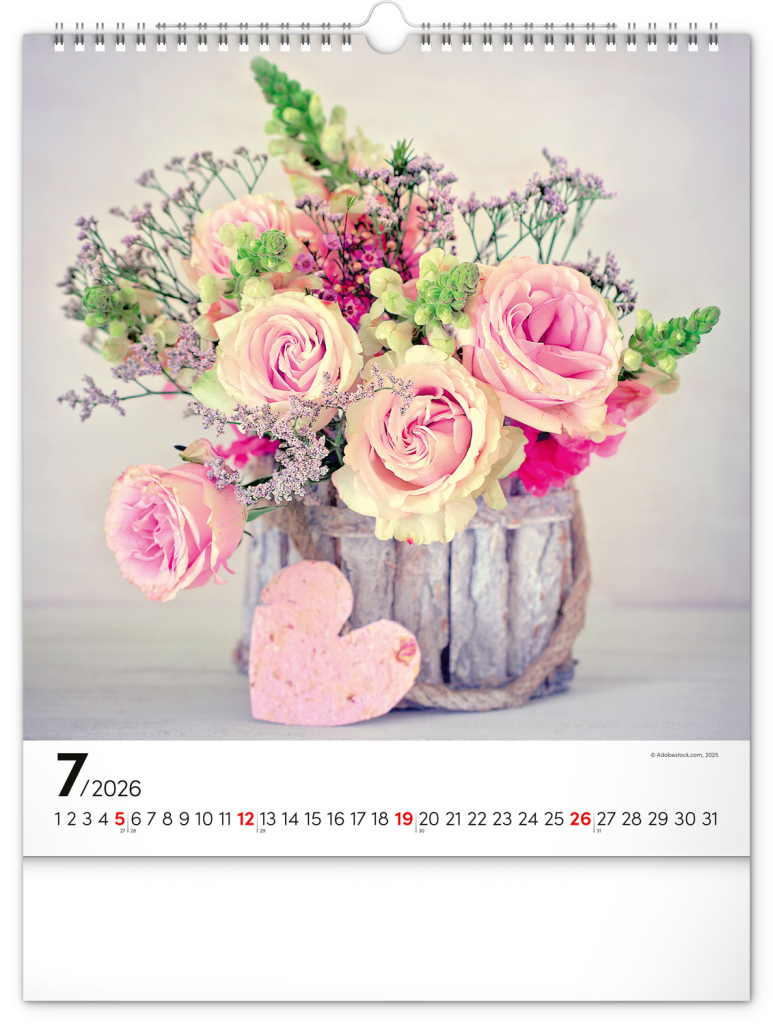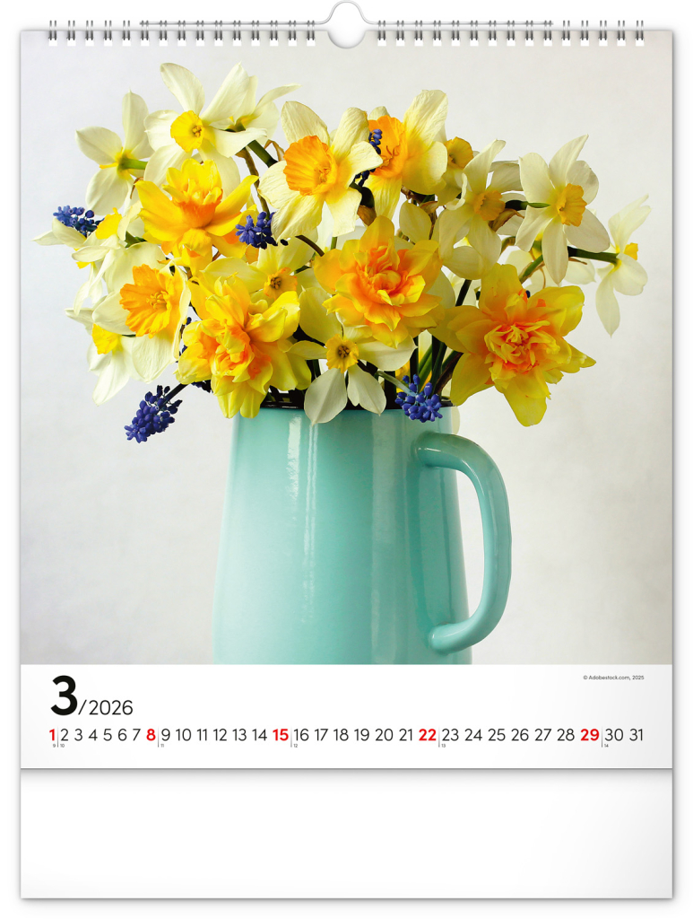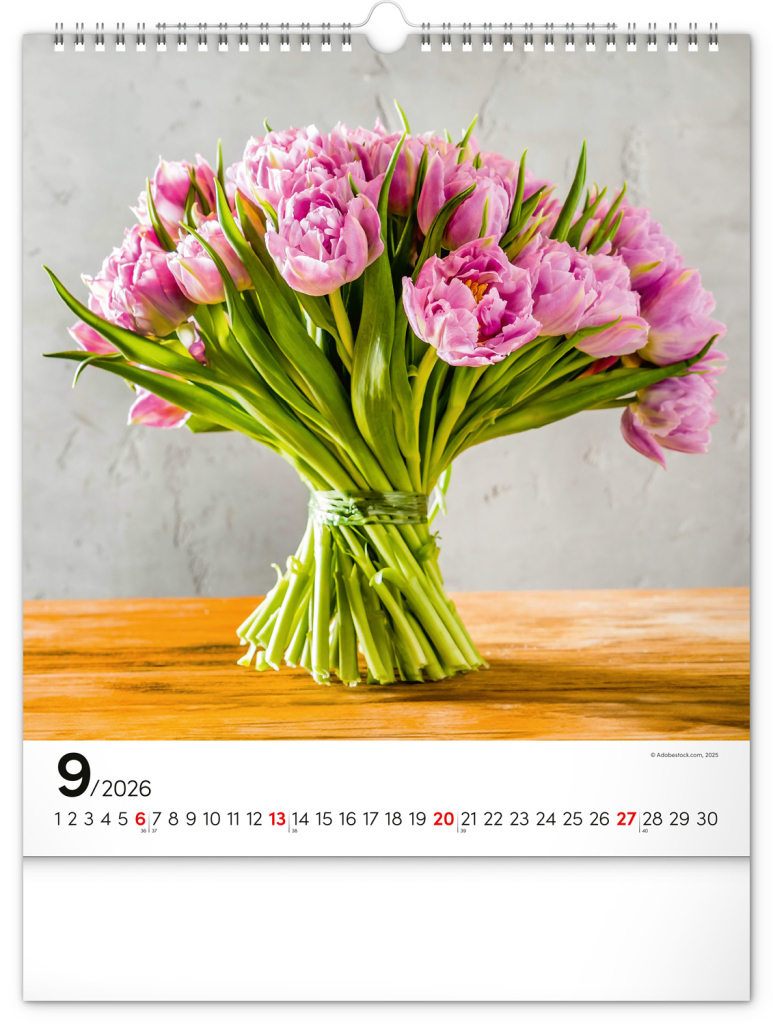 Kalendář 2026 nástěnný: Květiny, 30 x 34 cm