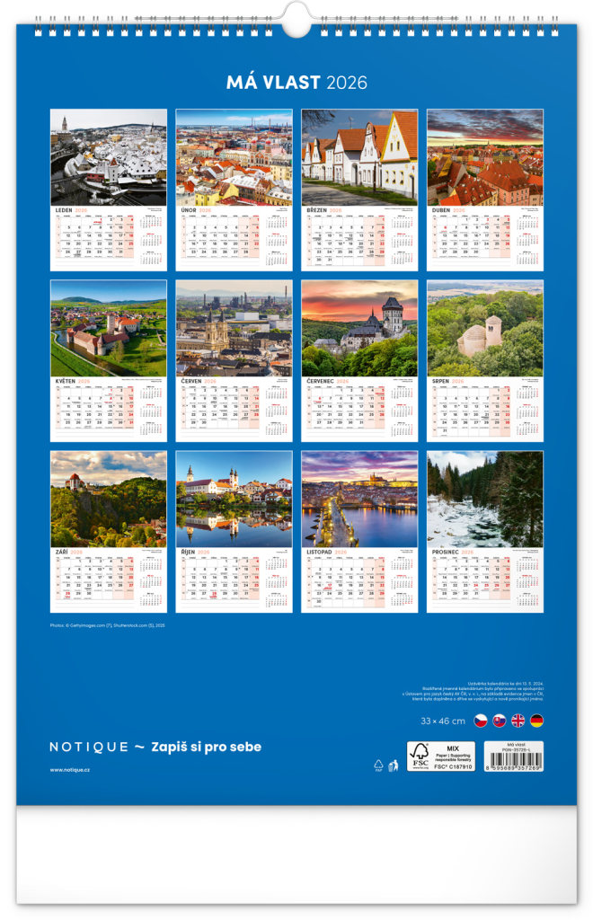 Kalendář 2026 nástěnný: Má vlast, 33 x 46 cm