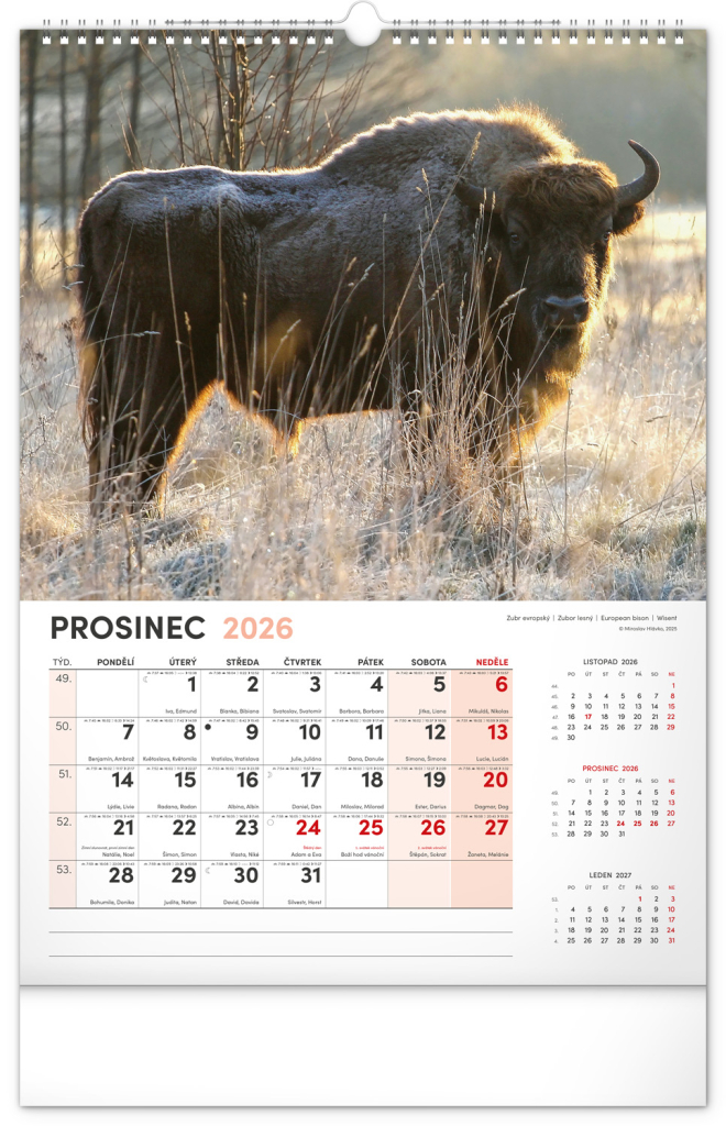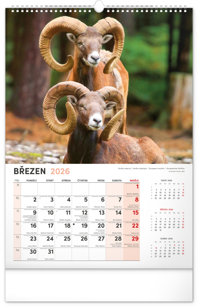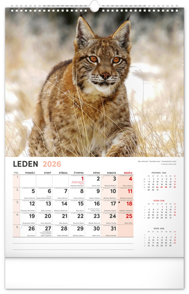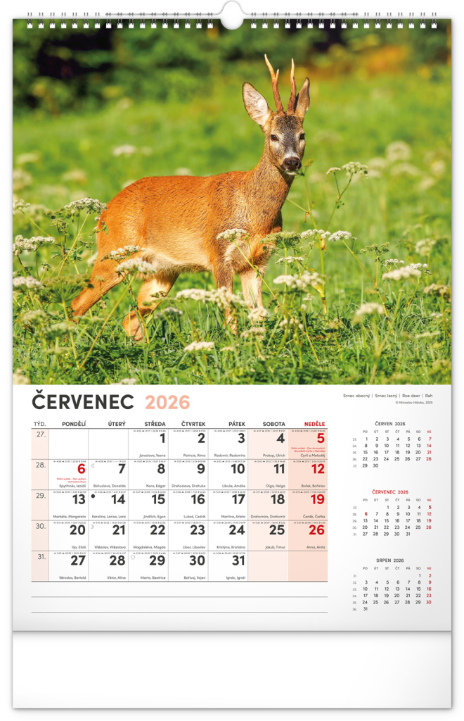 Nástěnný kalendář navržený přímo pro myslivce a pro milovníky myslivosti. Kromě působivých fotografií zvířat žijích v českých lesích se dozvíte dobu lovu a časy východů a západů slunce. Součástí kalendáře je rozšířené kalendárium se svátky a českými jmény.