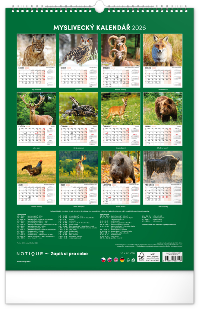 Kalendář 2026 nástěnný: Myslivecký, 33 x 46 cm