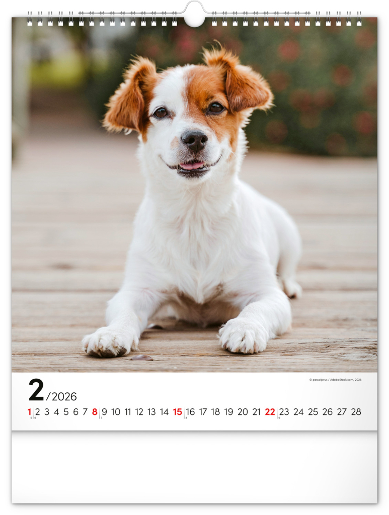 Pes je nejlepším přítelem člověka. Snímky dvanácti psích plemen jsou v našem nástěnném kalendáři doplněny univerzálním kalendáriem na bílém pozadí.