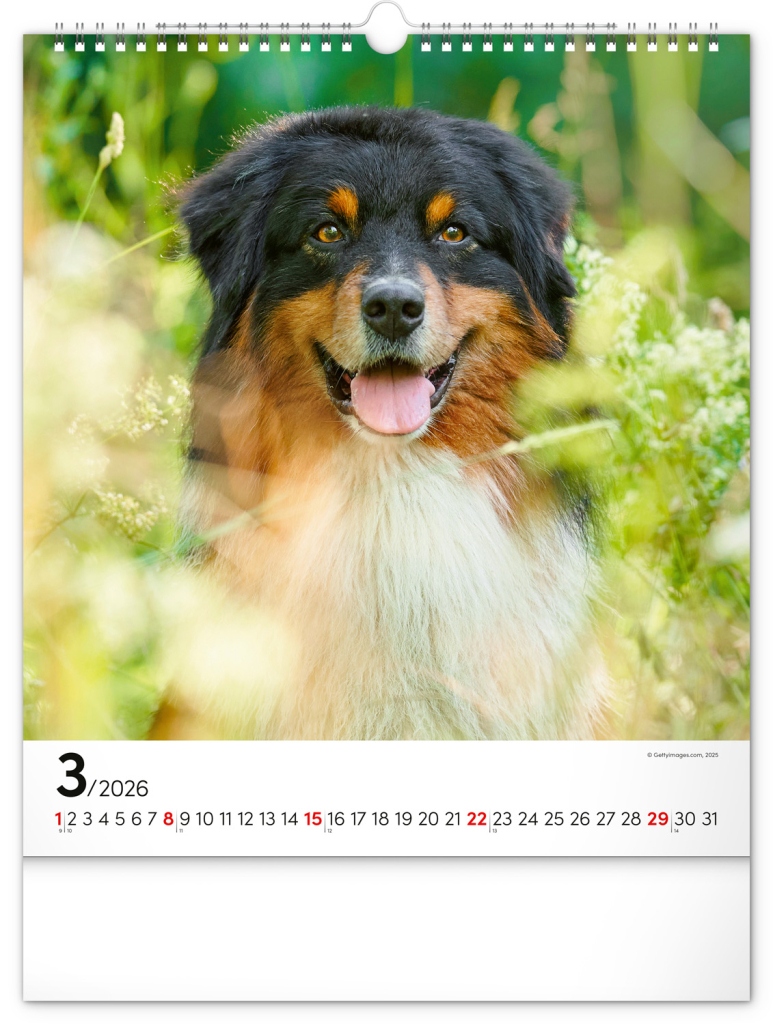 Kalendář 2026 nástěnný: Psi, 30 x 34 cm