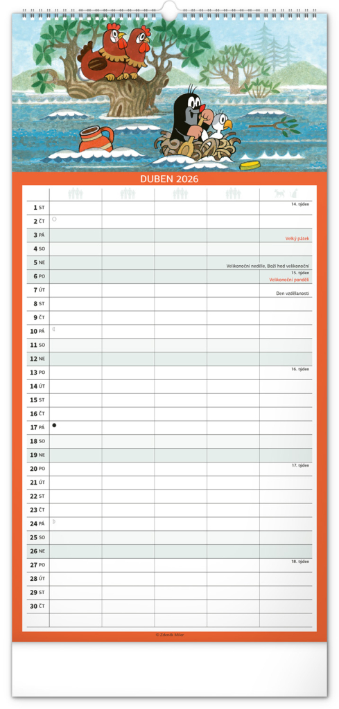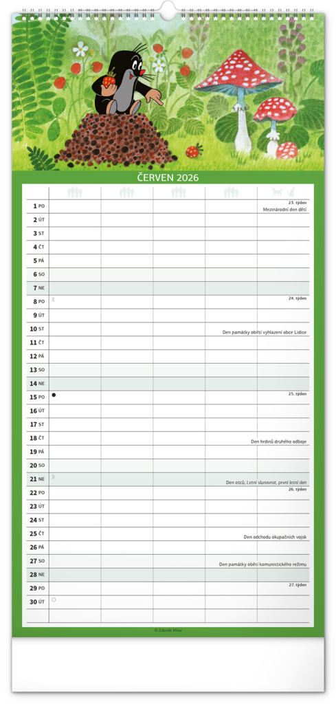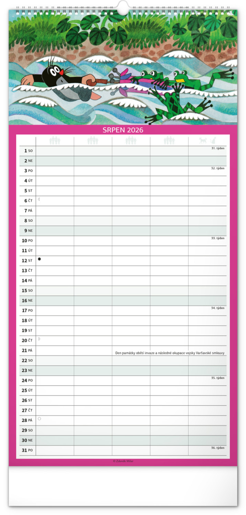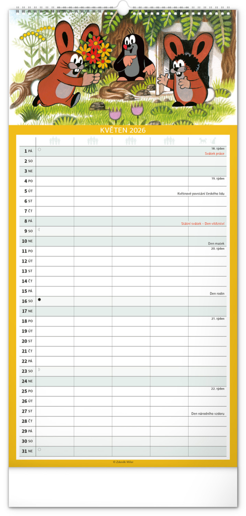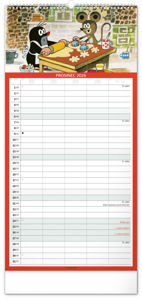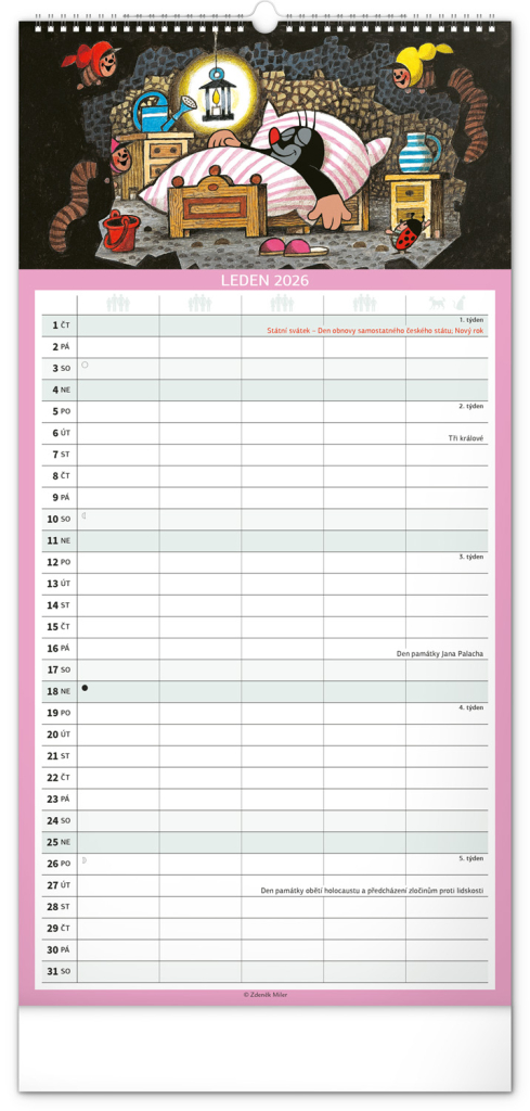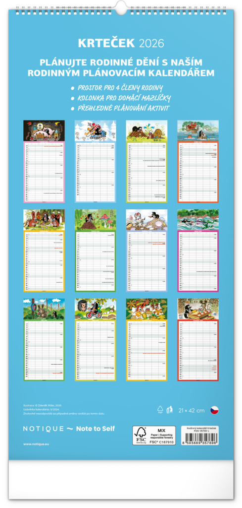 Je pro vás rodina na prvním místě? Zorganizujte všechny rodinné aktivity v praktickém plánovacím kalendáři s klasickými ilustracemi Krtečka od Zdeňka Milera. Kalendář obsahuje české kalendárium a samostatný plánovač aktivit až pro pět členů domácnosti.
