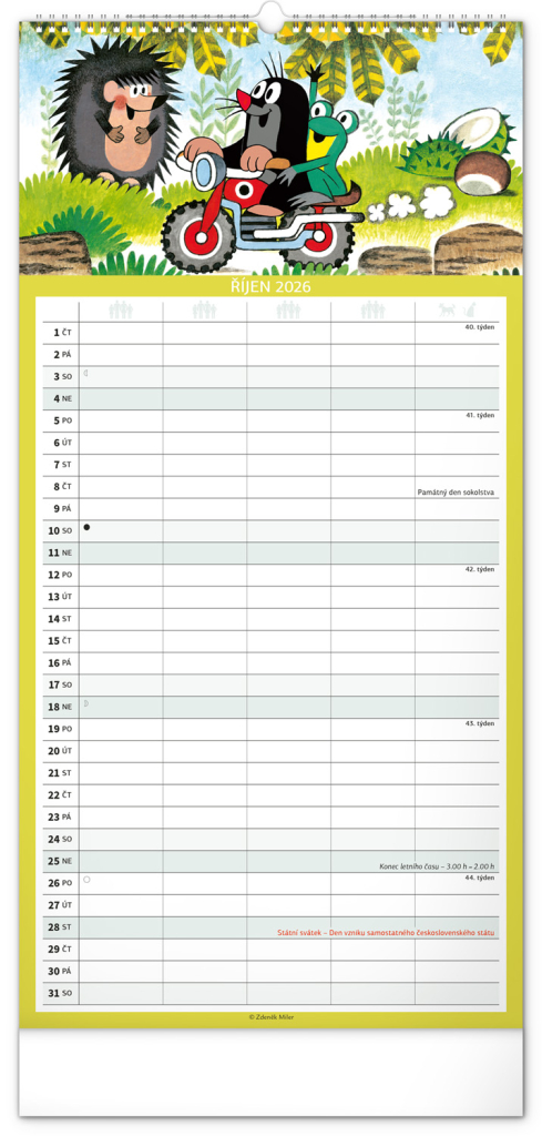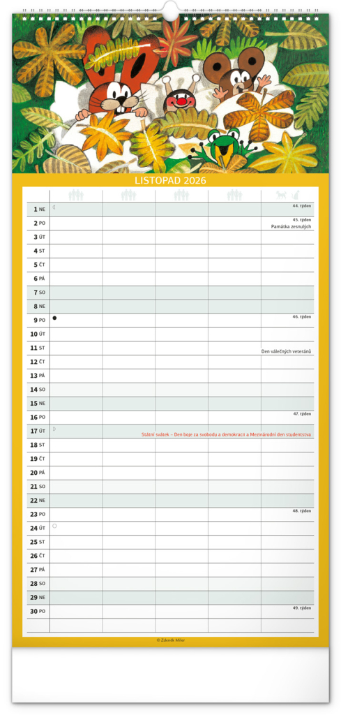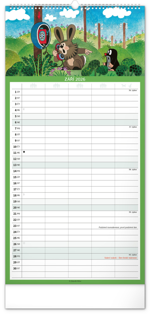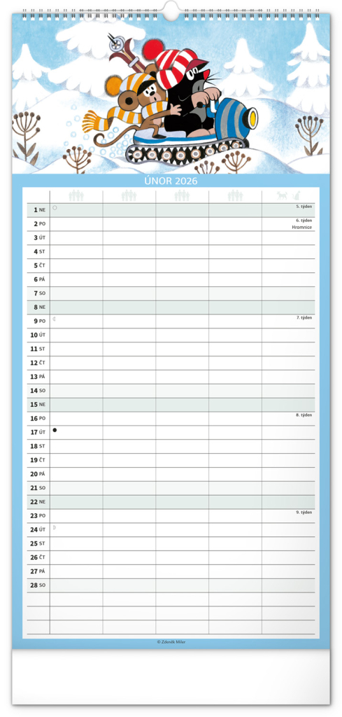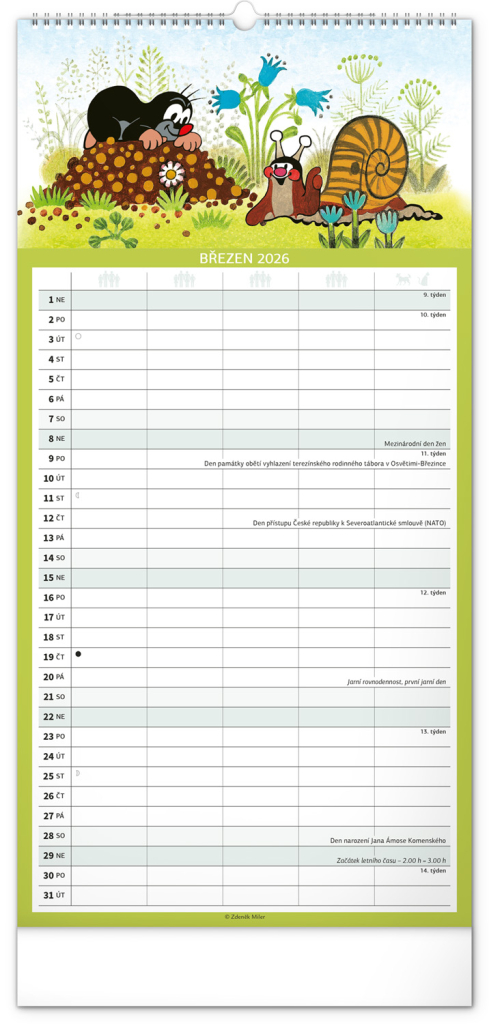 Kalendář 2026 nástěnný: Rodinný, plánovací Krteček, 21 x 42 cm