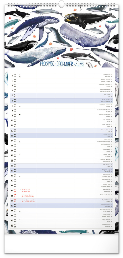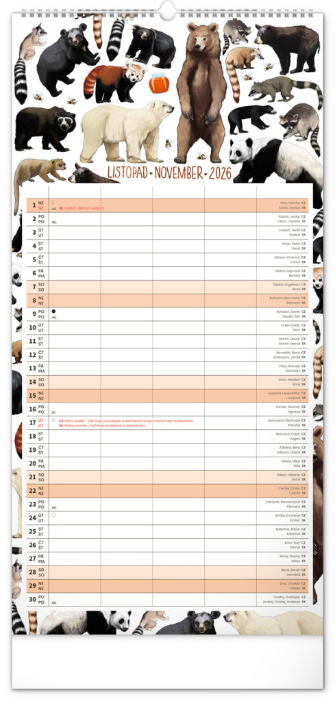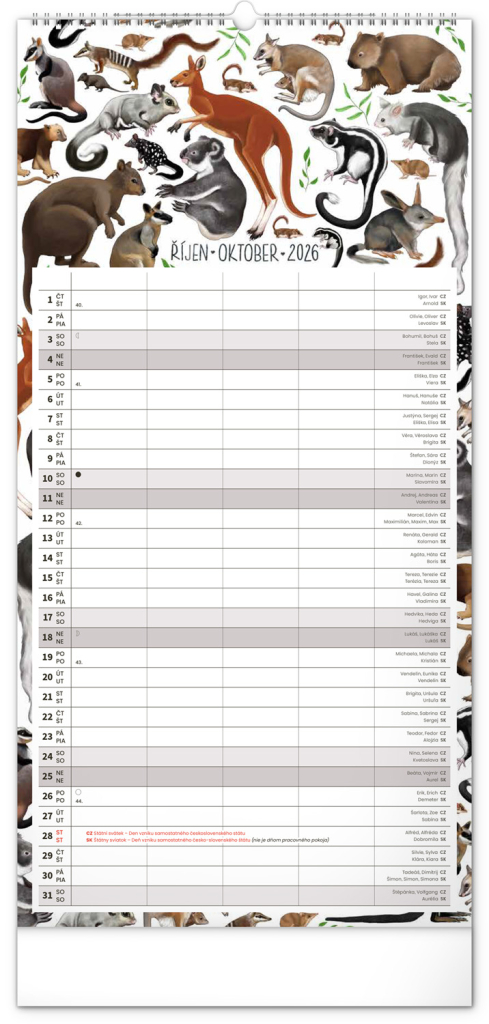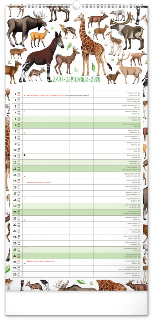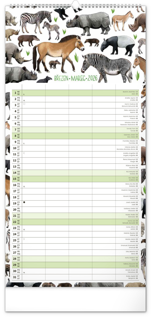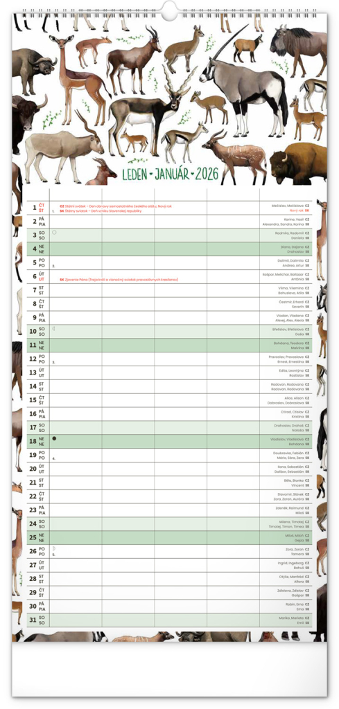 Kalendář 2026 nástěnný: Rodinný, plánovací Animalium, 21 × 42 cm