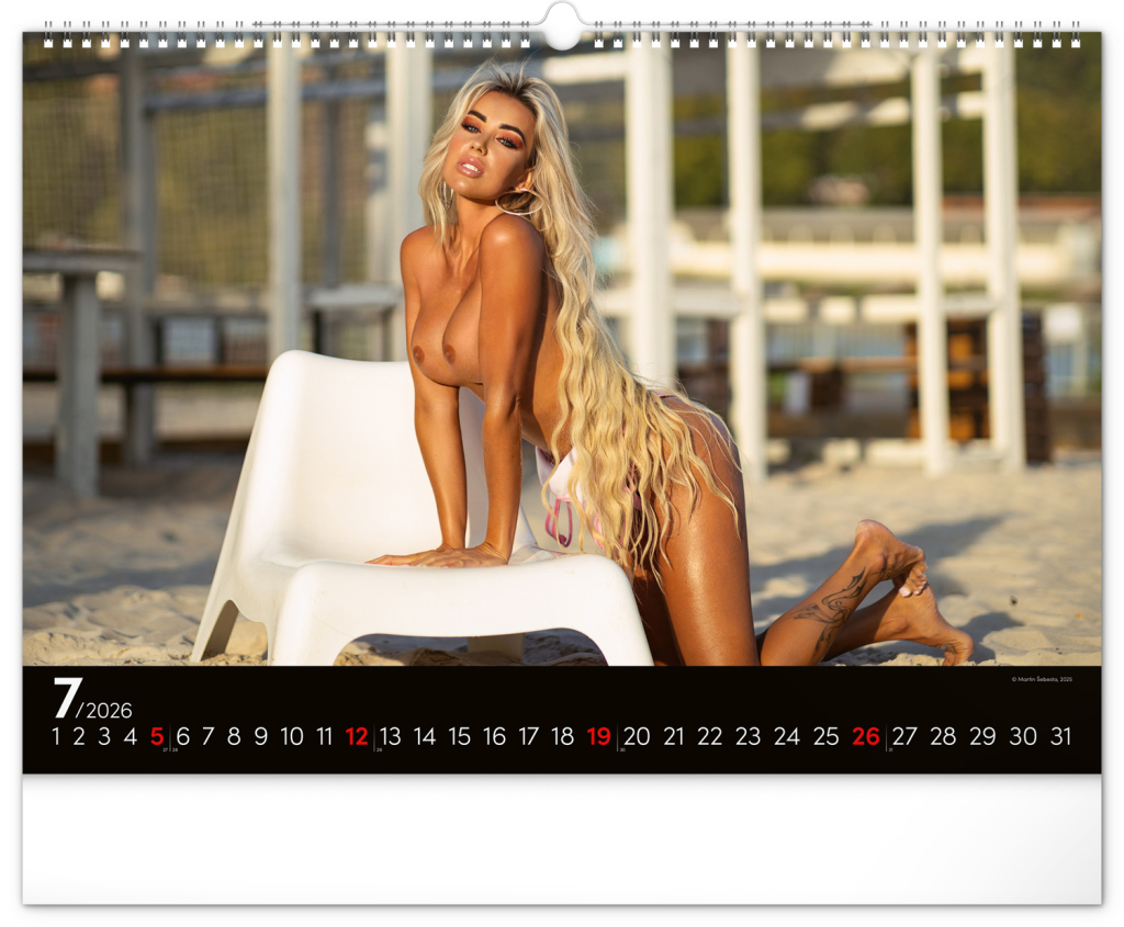 Kalendář s jednoduchým kalendáriem na vás dýchne prázdninovou atmosférou díky fotografiím přitažlivých dívek v typicky letním prostředí.