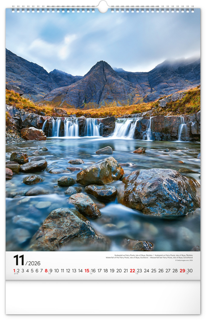 Stálý titul mezi kalendáři zachycujícími krásu přírody. Fotografie přibližují vodní živel v jeho nejrůznějších podobách – klidné i rozbouřené hladiny řek či jezer, ale i běsnící vodopády. To vše na stránkách kalendáře ve výškovém formátu s jednoduchým kalendáriem.