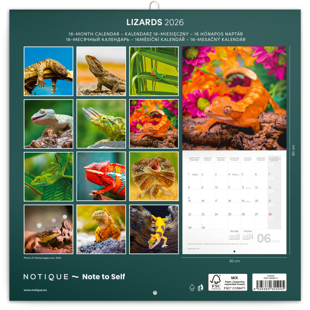 Kalendář 2026 poznámkový: Ještěři 30 x 30 cm