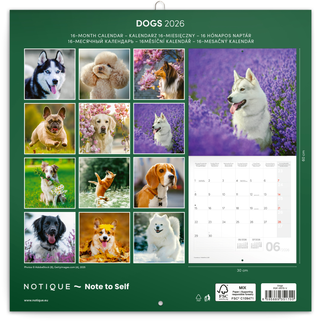 Kalendář 2026 poznámkový: Psi 30 x 30 cm