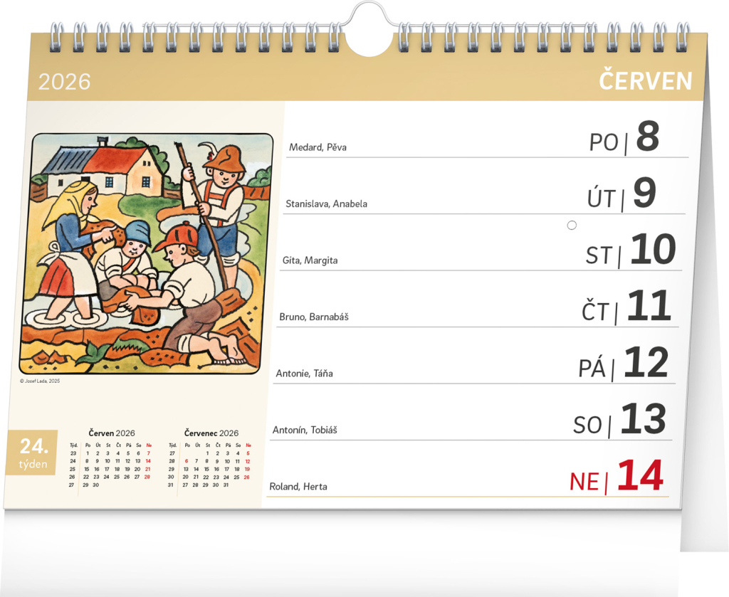 Kalendář 2026 stolní: Josef Lada s extra velkým kalendáriem, 30 x 21 cm