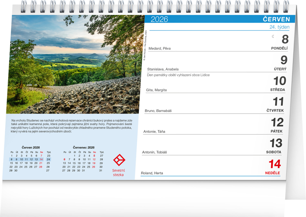 Kalendář 2026 stolní: Po Česku stezkami Via Czechia, 23,1 x 14,5 cm