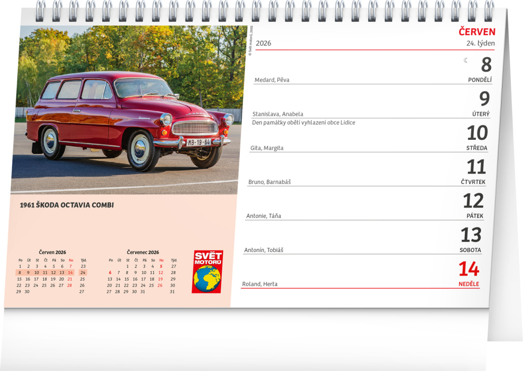 Kalendář 2026 stolní: Svět motorů, 23,1 x 14,5 cm