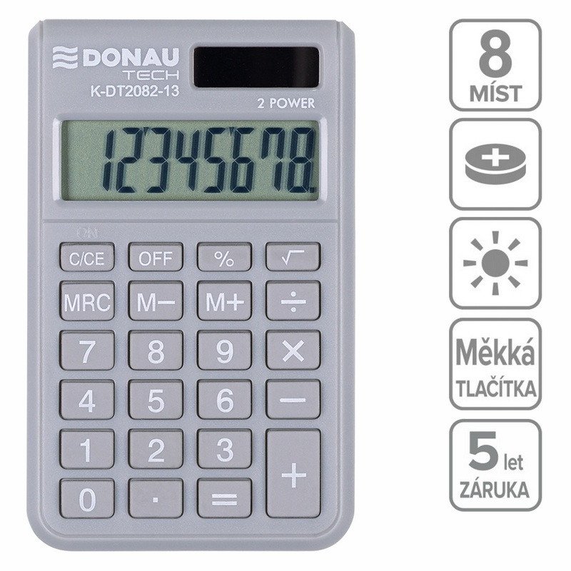 Kapesní kalkulačka DONAU TECH 2082, 8místná, sv. šedá