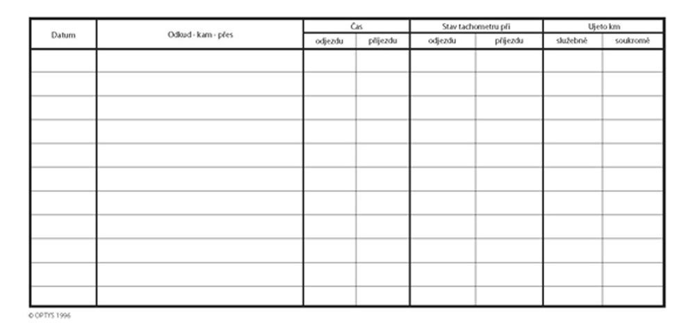 Kniha jízd firemního vozidla, 21 × 10 cm, 32 listů