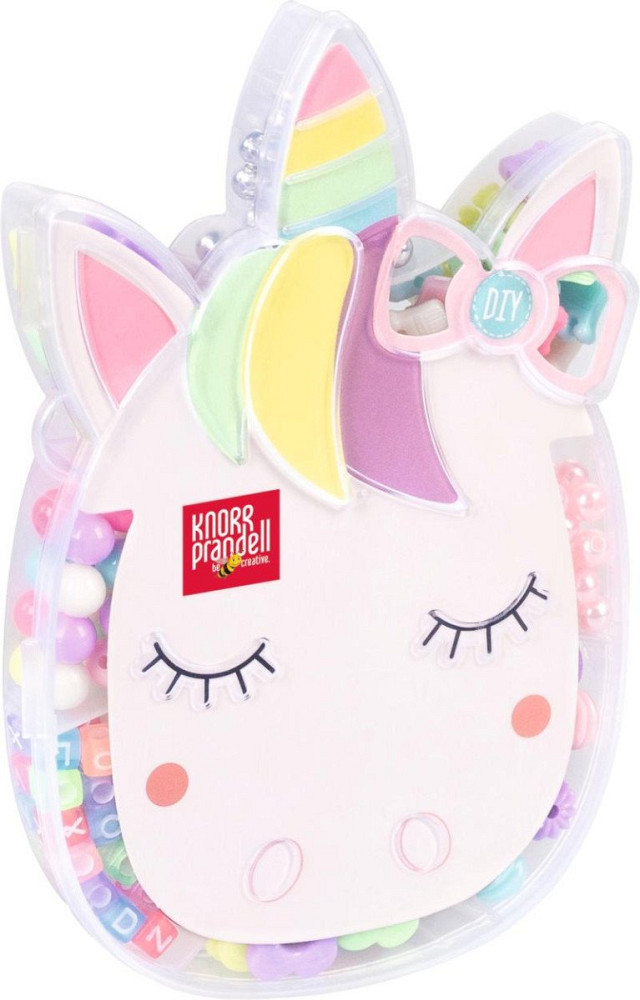 Set pro navrhování náhrdelníků a náramků. Balení obsahuje plastové korálky v různých barvách a provedeních, bílou a růžovou elastická nit a opakovaně uzavíratelnou krabičku. Perly barevně sladěné průhledné a neprůhledné. Vhodné pro děti od 4 let.