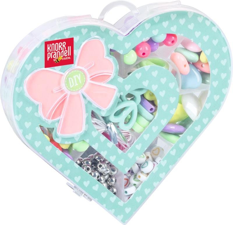 Set pro navrhování náhrdelníků a náramků. Balení obsahuje plastové korálky v různých barvách a provedeních, bílou a růžovou elastická nit a opakovaně uzavíratelnou krabičku. Perly barevně sladěné průhledné a neprůhledné. Vhodné pro děti od 4 let.