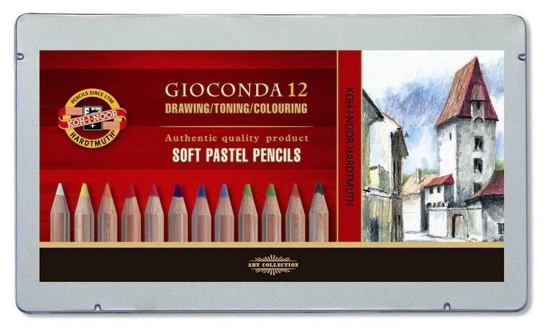 Koh-i-noor křídy prašné umělecké v tužce GIOCONDA souprava 12 ks v plechové krabičce