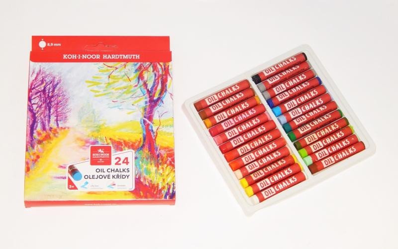 Souprava olejových kříd určených pro školní účely, pro aranžérské a umělecké kreslení. Souprava 24 kusů olejových kříd - průměr cca 8,9 mm, délka 60 mm.