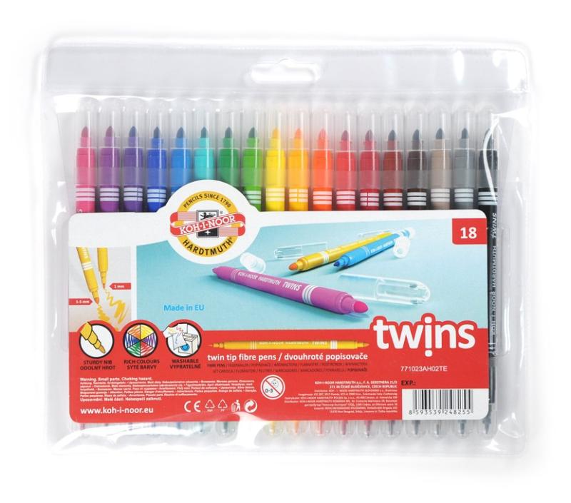 Koh-i-noor souprava popisovačů Twins 18 ks s dvojitým hrotem