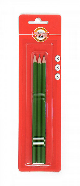 Souprava šestihranných grafitových tužek v gradaci č.3. Tužky jsou v dřevěném plášti a v zeleném lakování. Balené po 3 ks jedné gradace do blistru. Tužky jsou vhodné jak pro školáky tak i pro univerzální použití.