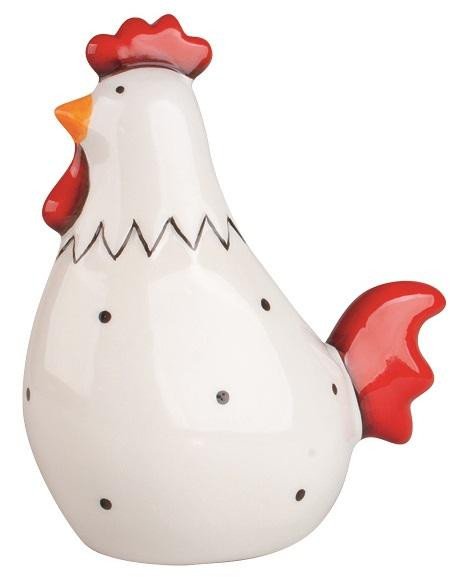 Kohout s červenými detaily z keramiky na postavení 11 x 6 x 13 cm