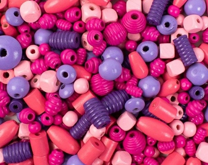 Korálky dřevěné růžovo-fialové big 450 ks