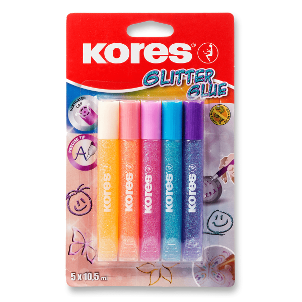 Lepidlo se třpytkami v pastelových barvách (žlutá, broskvová, růžová, tyrkysová, fialová)