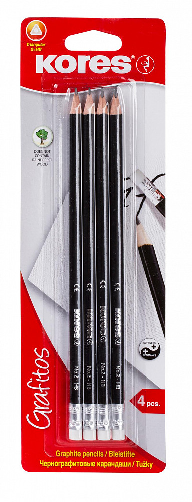 Kores Trojhranná tužka č. 2 = HB s gumou 4 ks