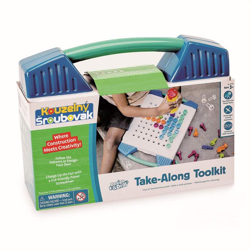 Veškeré příslušenství uložíte do pevného plastového kufříku a odnesete díky pohodlnému uchu. Kufřík během okamžiku rozložíte na odolnou pracovní desku s otvory pro plastové šrouby a kreativní tvorba může začít! Cestovní sada je obohacená o 3 různé nástavce na šroubování - plochý, křížový (Philips) a maticový. Veškeré nářadí i kufřík je bezpečný pro používání a vše je přizpůsobeno malým dětský m rukám, aby nebyly při tvořivé hře omezováni.