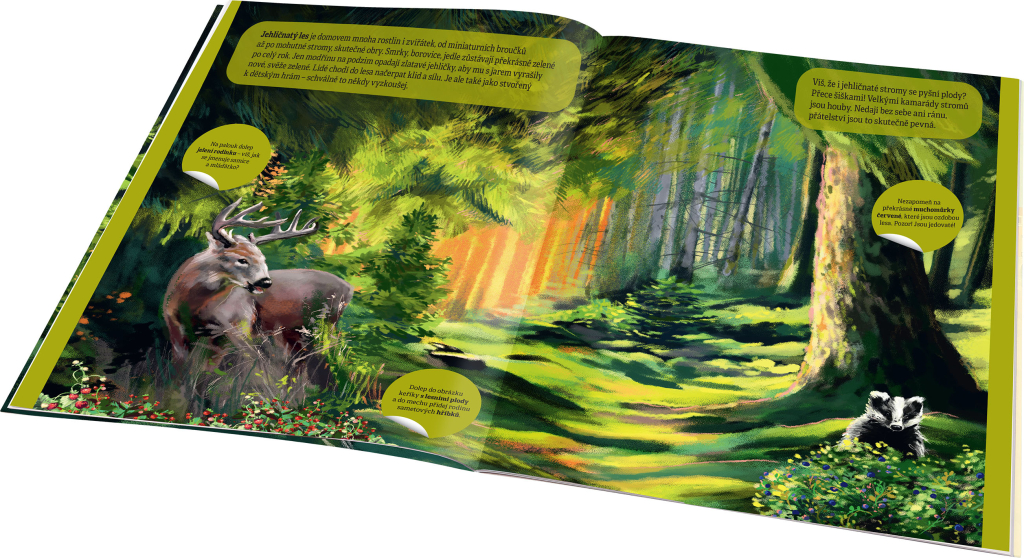 Člověk by neřekl, kolik různých druhů lesů najdeme jen u nás v Česku! Jehličnatý, listnatý nebo smíšený les zná asi každý. Ale co třeba takový prales, lužní, rašelinný nebo skalní les? A kdo někdy slyšel o pařezině a ví, co je kosodřevina? V téhle knížce poznáte všechna zmíněná prostředí i s jejich živými obyvateli a typickým porostem a dozvíte se o nich řadu zajímavostí. Seznámíte se s nimi na překrásných dvoustránkových obrázcích, kam můžete podle pokynů nebo vlastní fantazie dolepovat samolepky a užít si spoustu zábavy!