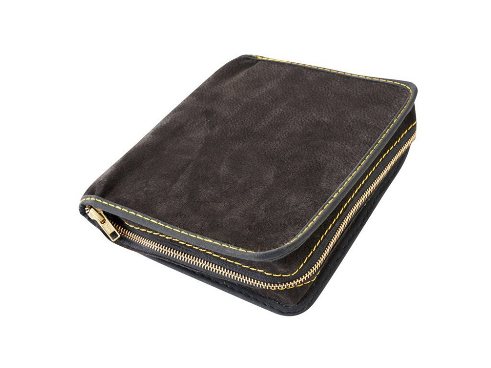 Kožený obal na knihu se zipem - kůže hnědá tmavá semiš