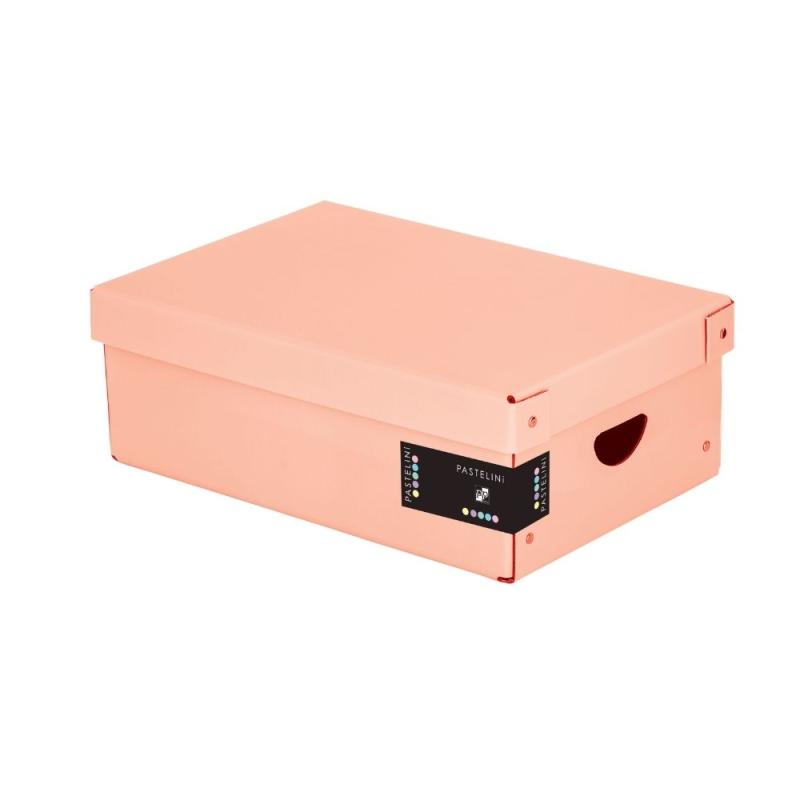 Lamino krabice s víkem a výřezem na úchytky pro snadnější manipulaci. Vhodná k uchování různých předmětů od dokumentů až po hračky. Rozměry: 35,5 x 24 x 9 cm