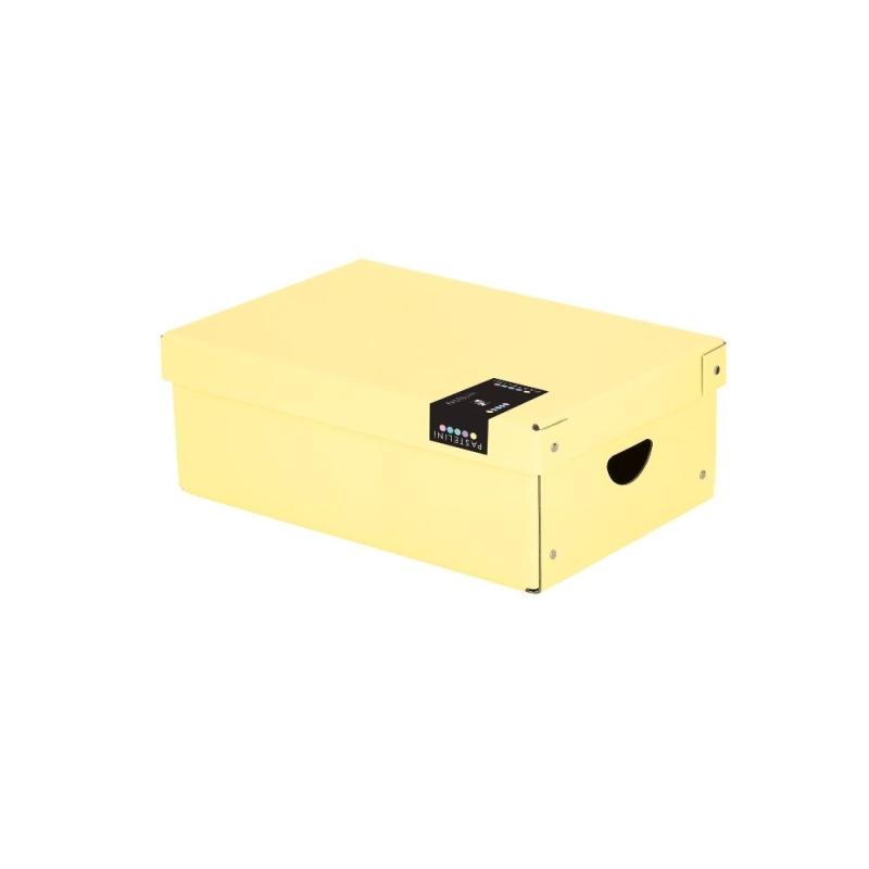 Lamino krabice s víkem a výřezem na úchytky pro snadnější manipulaci. Vhodná k uchování různých předmětů od dokumentů až po hračky. Rozměry: 35,5 x 24 x 9 cm