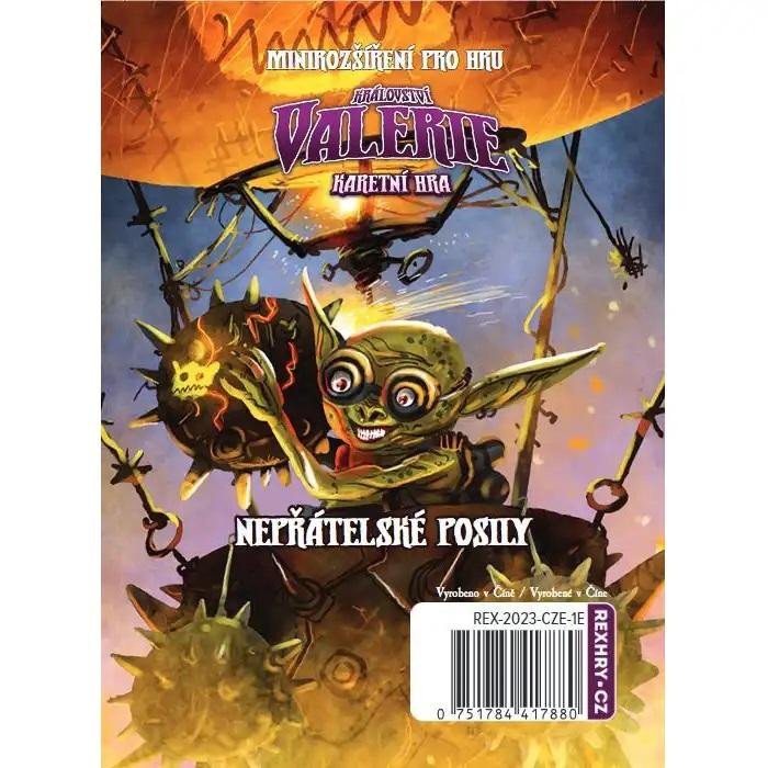 Nepřátelské posily je minirozšíření pro hru Království Valerie: Karetní hra, které přidává po jedné kartě nepřátel do všech sad ze základní hry i do rozšíření Plameny a mráz. Čekají vás tak nemrtvý rytíř, faraon či bába z mokřin. Nové karty jsou novým typem nepřátel - tzv. strážci, a pokládají se v balíčku nepřátel hned nad kartu velitele.