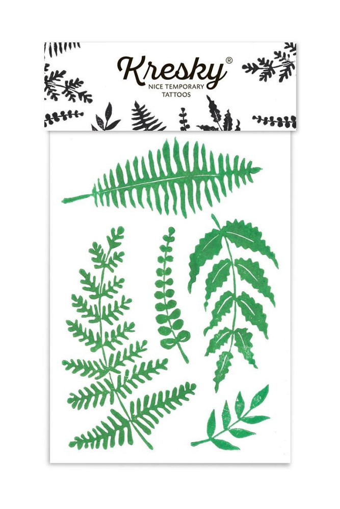Moderní kapradí nám mezi Kreskami chybělo! Tohle vzniklo ve spolupráci s českou umělkyní Katkou Tichaiovou alias "přírodaholik". Katka chodí za nápady především do křivoklátských lesů a vjemy z nich přetavuje do přírodních linorytů. Dočasné tetování neaplikujte na citlivou pokožku, v blízkosti očí nebo v případě alergie. Dermatologicky testováno, bezpečné pro děti.
